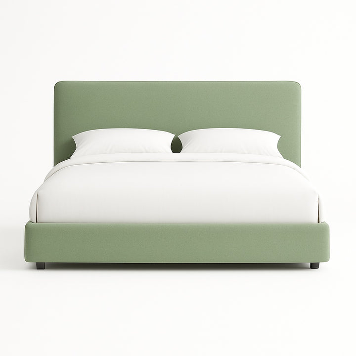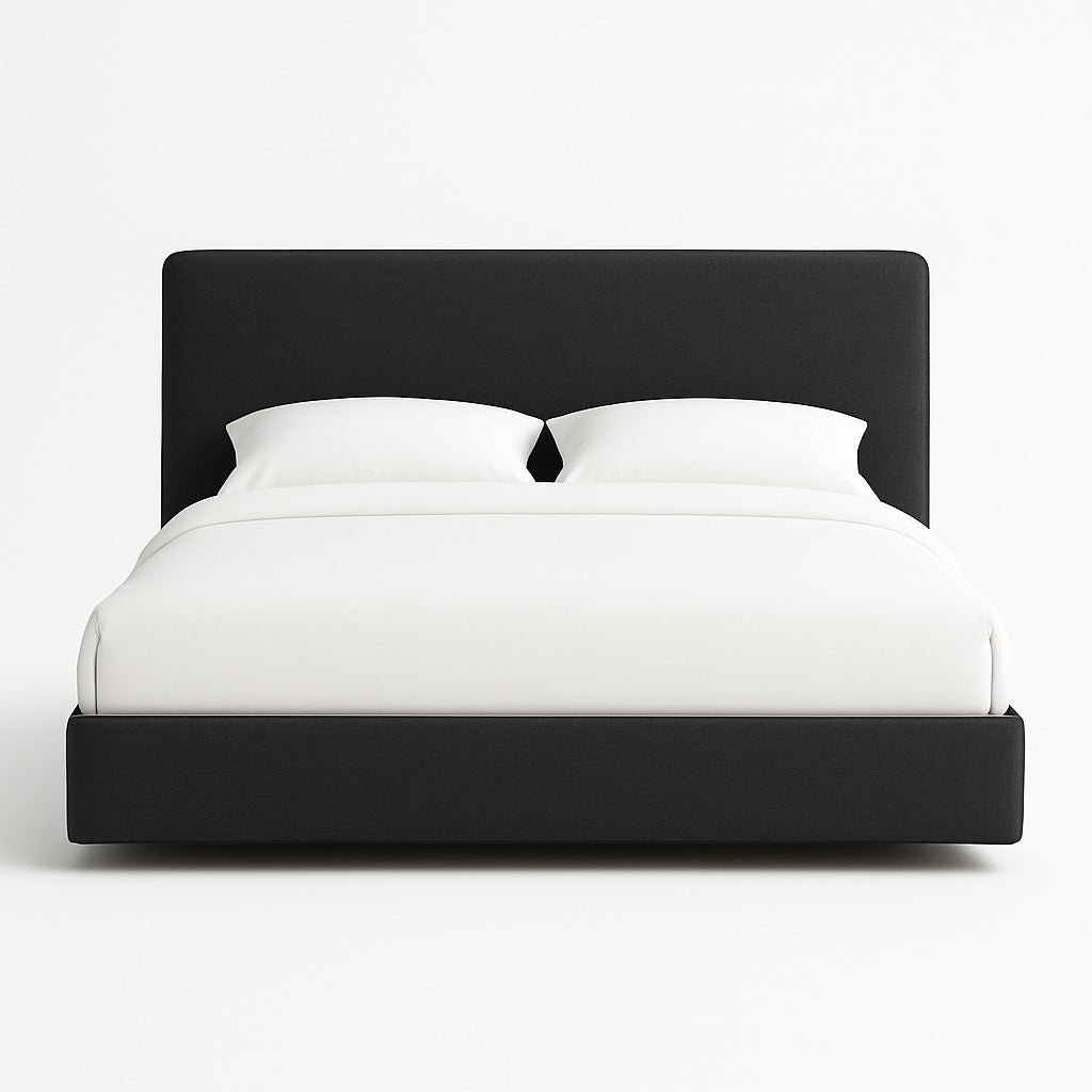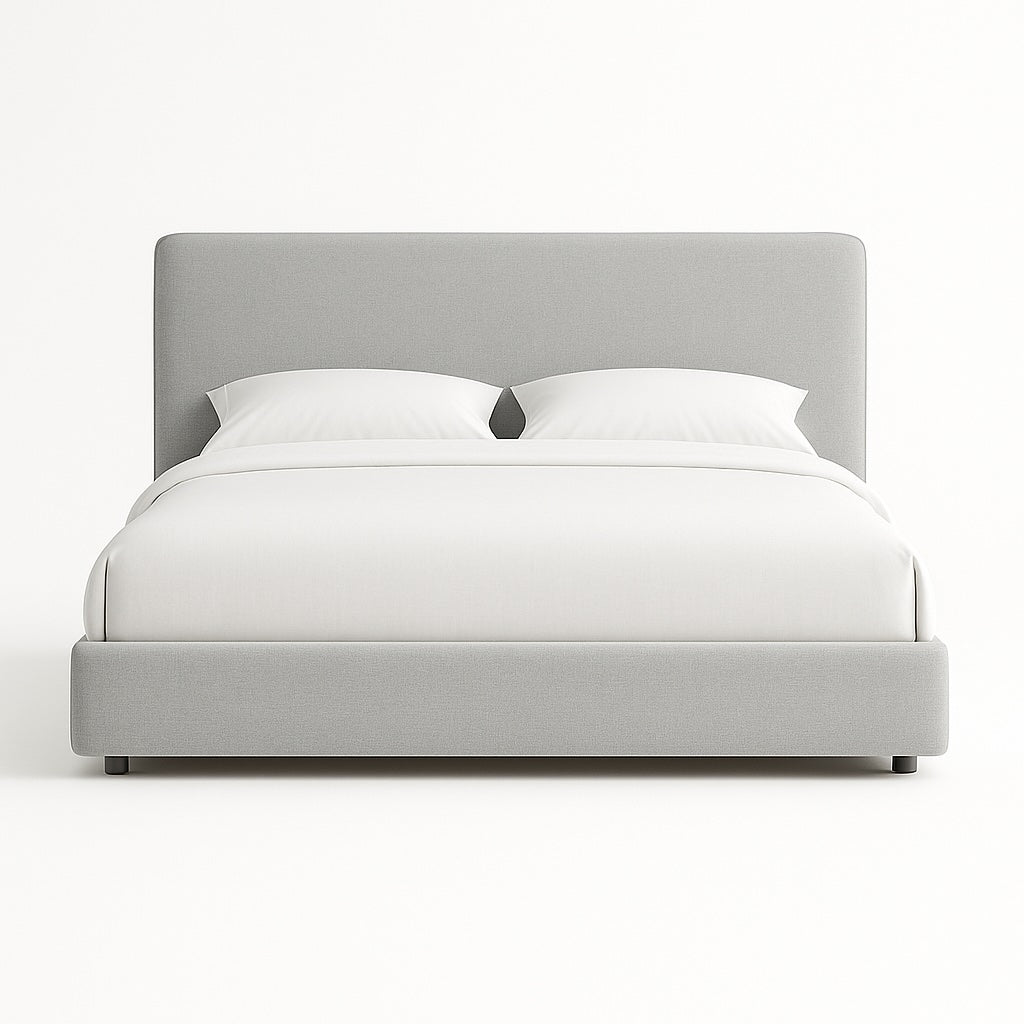 Transform your bedroom with this minimalist upholstered platform bed, designed with smooth rounded edges and a soft, modern silhouette. Its clean lines, fabric-wrapped frame, and inviting headboard make it the perfect foundation for a calm, contemporary space.
