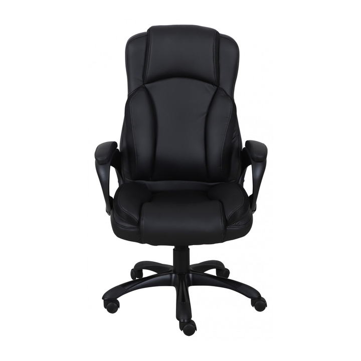 The Axel Executive Office Chair combines ergonomic comfort with executive-level aesthetics, making it the perfect upgrade for any professional or home office. Upholstered in smooth black faux leather with strategically placed mesh panels for breathability, Axel delivers all-day support with a contoured high-back design, padded armrests, and thick cushioning at every contact point.