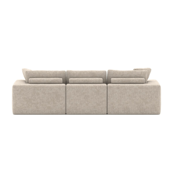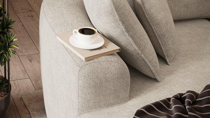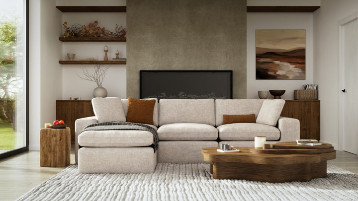 Crafted with a durable hardwood frame, high-resilience foam cushions, and sinuous spring support, the Camden sectional offers long-lasting structure and everyday comfort. The soft, woven fabric is both cozy and durable, standing up to everyday wear while offering a relaxed, inviting texture.