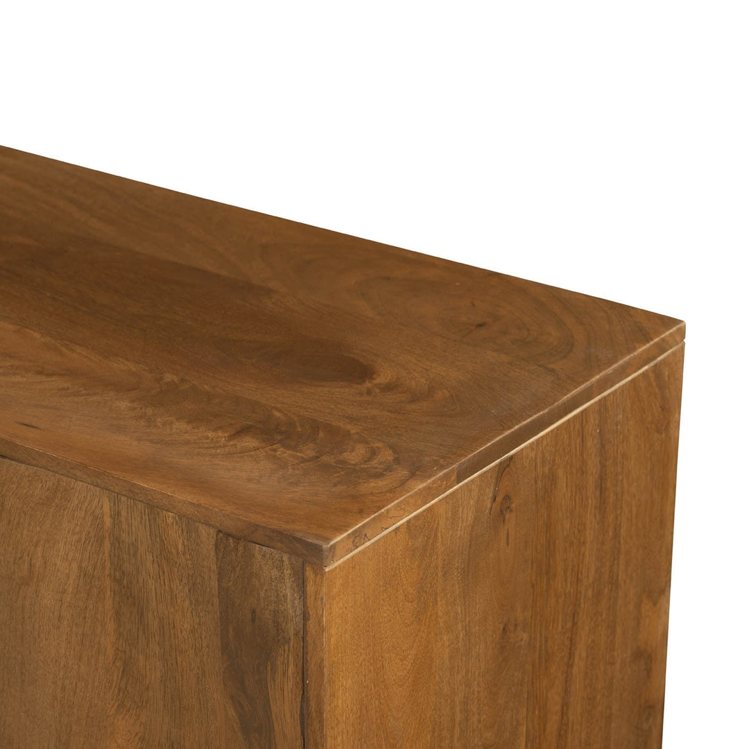 Introducing the Caracoal Sideboard – a masterpiece of craftsmanship and elegance, meticulously crafted from solid mango wood and presented in a luxurious smooth brown finish. Elevate your interior space with this exquisite sideboard that seamlessly blends functionality with artistic flair.