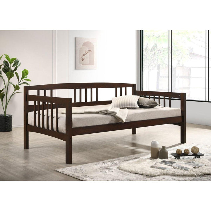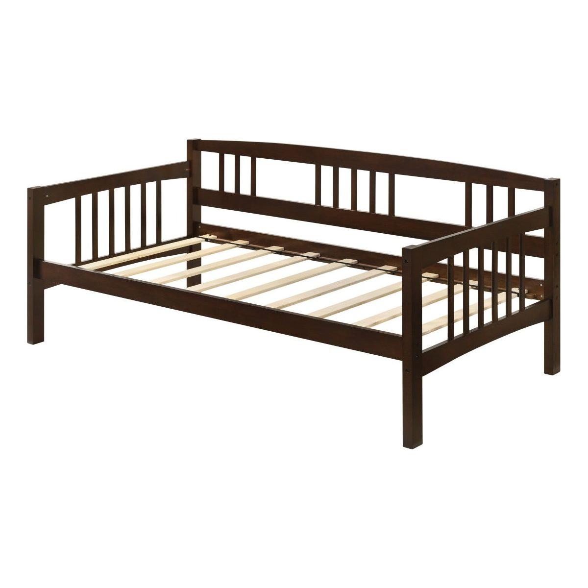 The Charles platform day bed in espresso is a stylish and versatile piece of furniture that is perfect for any modern living space. Crafted with a sturdy wooden and metal frame and finished in a rich, dark espresso tone, this day bed exudes elegance and sophistication. The platform design provides a comfortable and supportive base for a twin-sized mattress, while the simple yet elegant design makes it a great addition to any bedroom, guest room, or even a living room. Whether you're lounging, reading, or catching up on some much-needed rest, the Charles platform day bed is sure to provide a comfortable and relaxing experience.