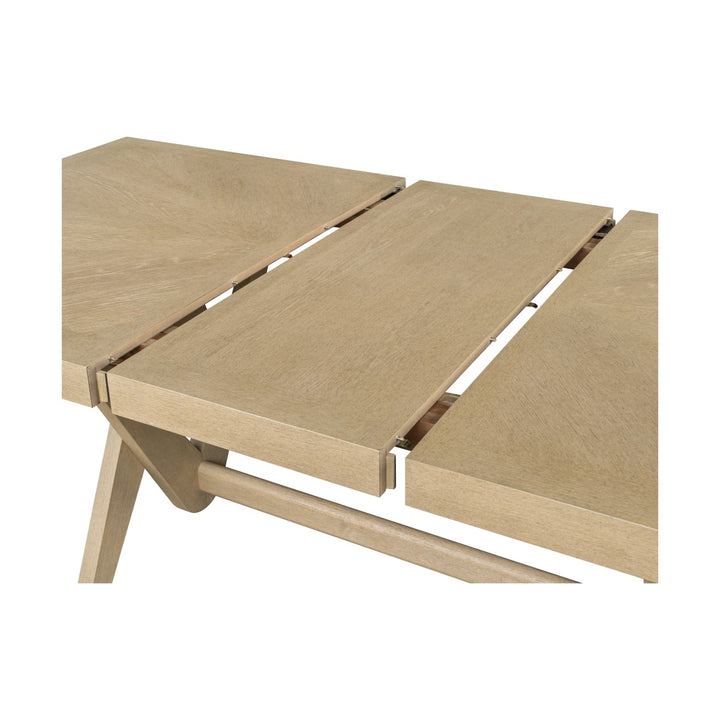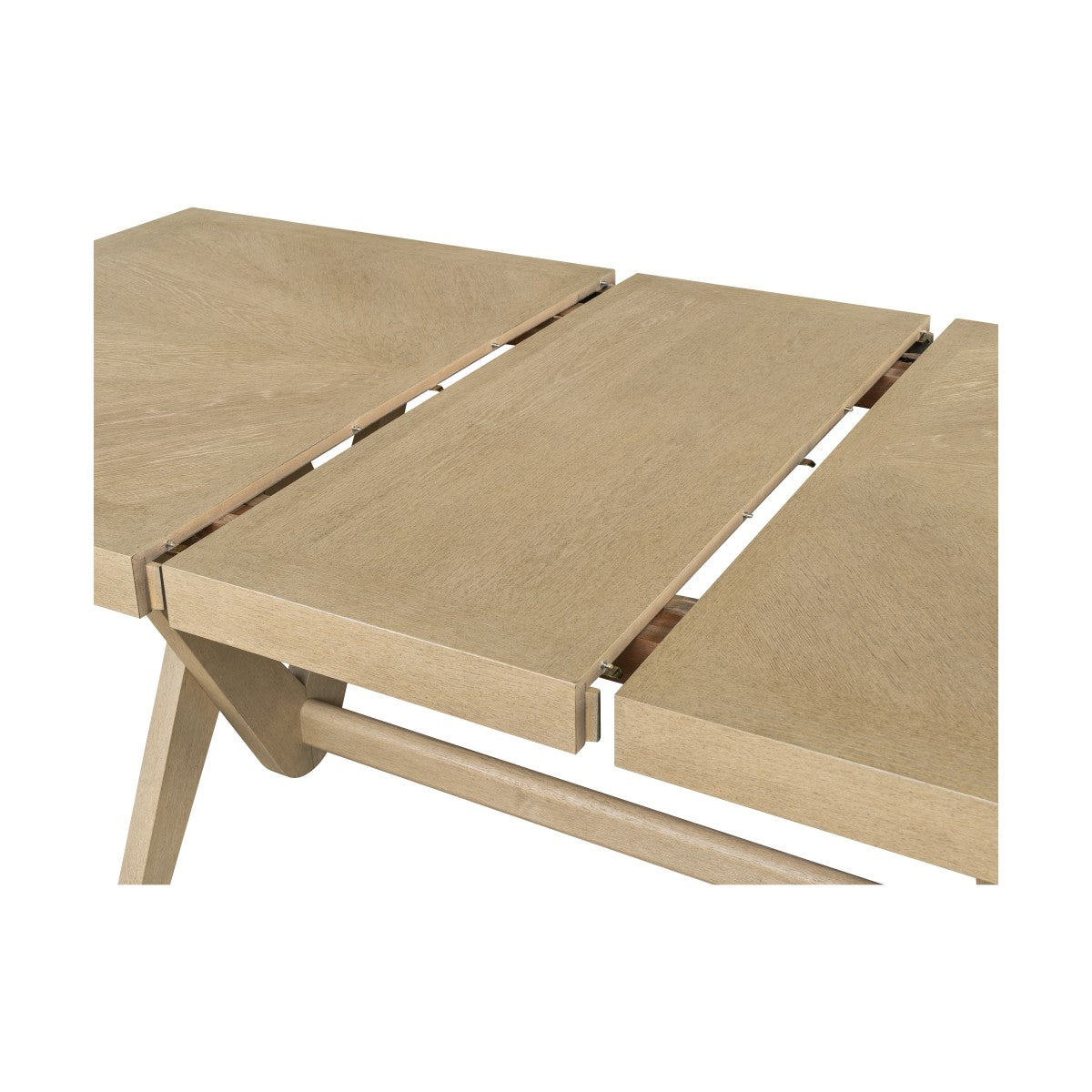 The spacious rectangular table features a clean-lined silhouette supported by a bold geometric base that adds architectural character to your dining space. An 18-inch extension leaf allows you to easily accommodate additional guests, making it perfect for both everyday family meals and special gatherings. The 18mm tabletop and sturdy 70mm apron provide structural stability while maintaining a streamlined, modern profile.