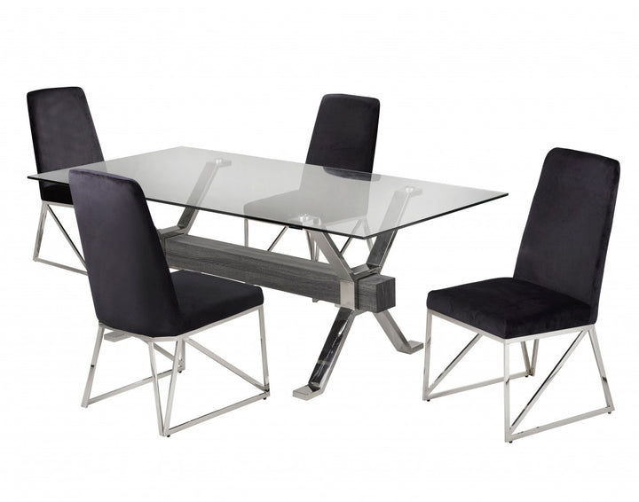 Luca Dining Set - 5-Piece (Grey Pedestal Table + Black & Grey Velvet Chairs) - Open Box