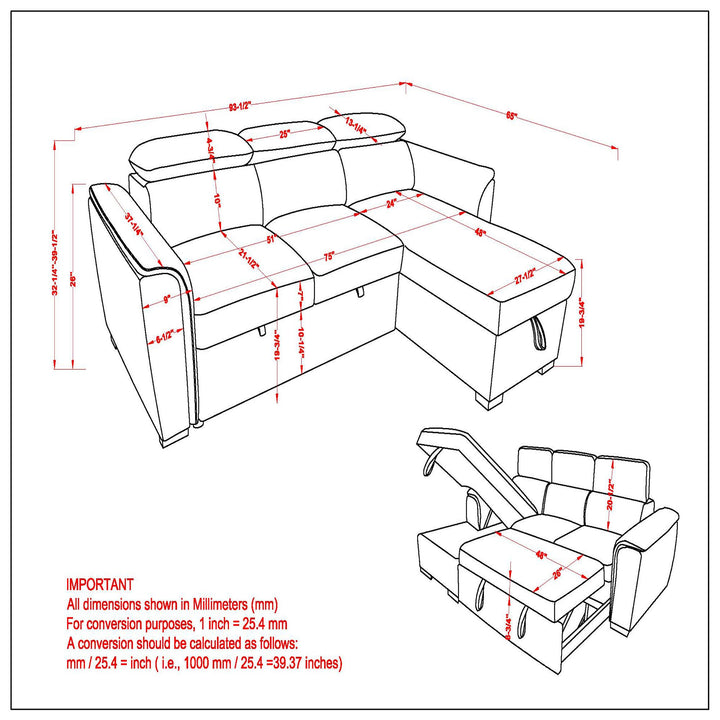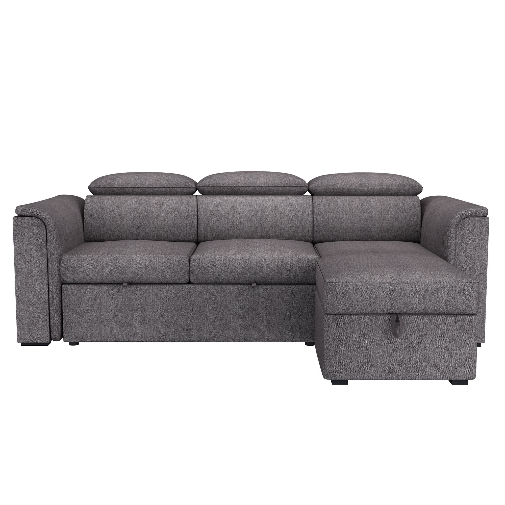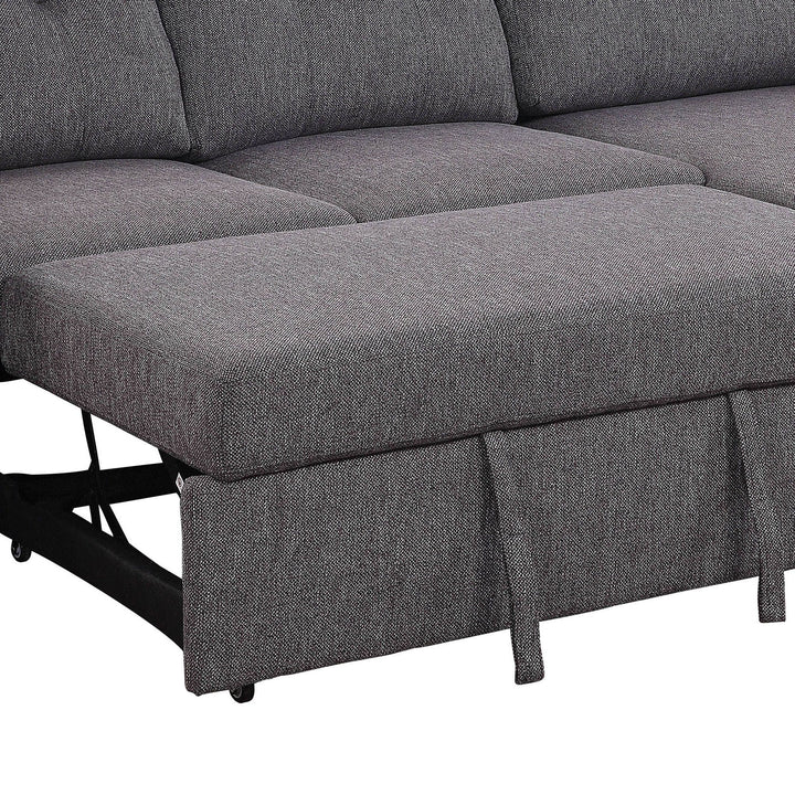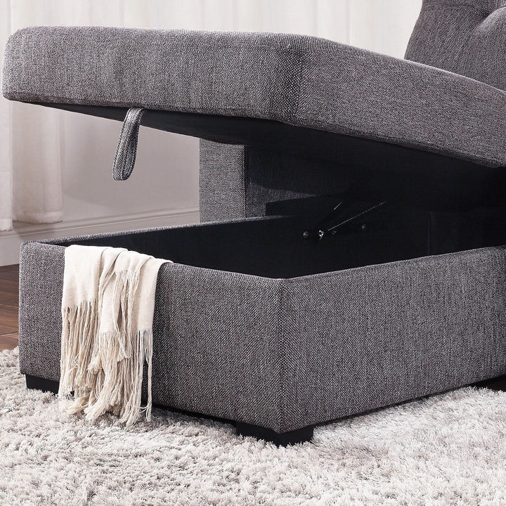 The Oskar Sectional Sofa is where modern functionality meets cozy comfort. Upholstered in a soft charcoal woven fabric, this sleek 2-piece sectional features an easy-to-convert pull-out bed and a spacious chaise with hidden storage—making it perfect for guests, movie nights, or compact living spaces.