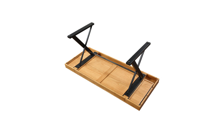 Sculptural, trestle style base design with a supportive, full-length crossbar under the tabletop