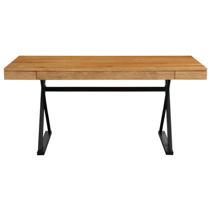 Design that works for you. Enriched in modern design, the Profecto desk's solid oak construction and trestle steel frame illustrate the minimalist lifestyle movement and novel choice for investing in timeless home office design. Ideal for studies, libraries, and to upgrade any home office setup, this desk sits stylishly while keeping your papers and pens organized with its three soft-close drawers that vary in size. Simply modern with clean lines, this long desk is adaptive to all sorts of interior scenes and decor directions.